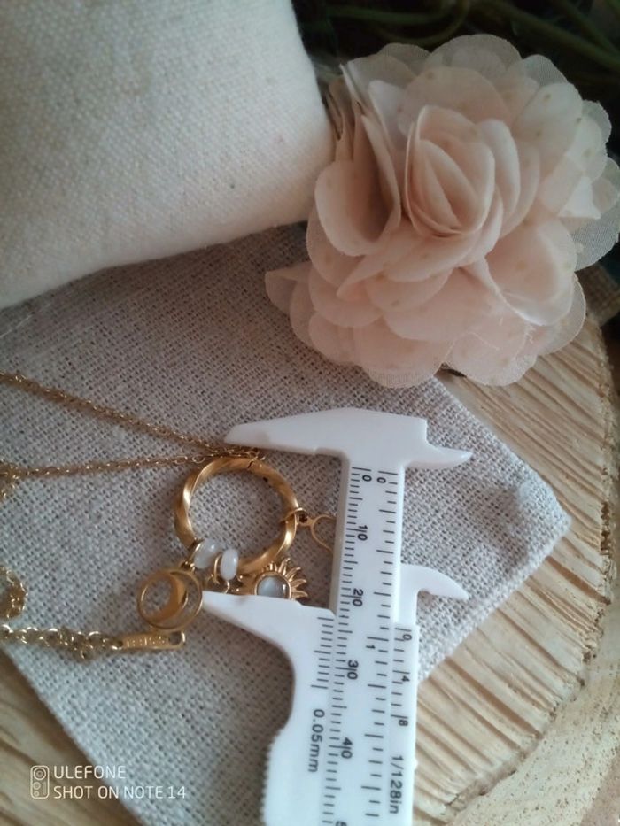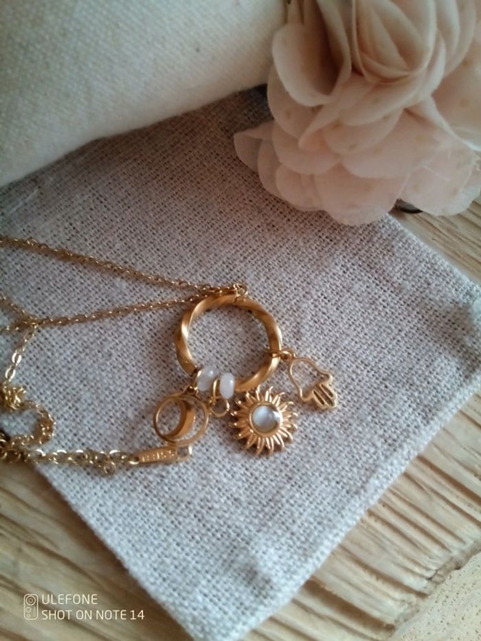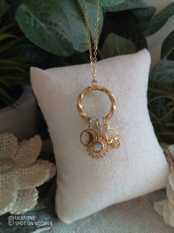 Collier astres anneau torsadé à breloques et pierres de cristal de roche et sélénite - photo numéro 4