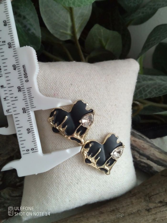 Boucles d'oreilles coeurs noirs - photo numéro 2