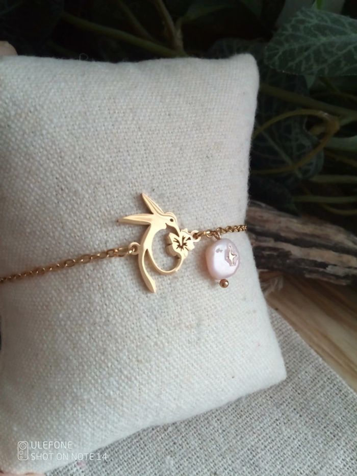 Bracelet colibri et pierre d'opale rose - photo numéro 1