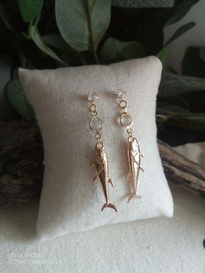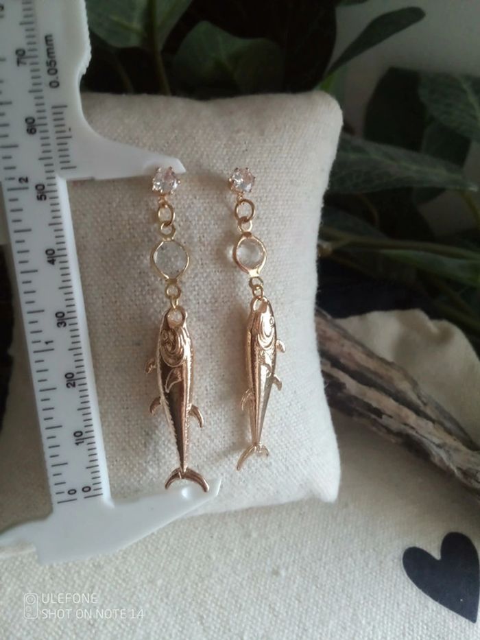 Boucles d'oreilles bohèmes poissons et pierres de cristal de quartz - photo numéro 1