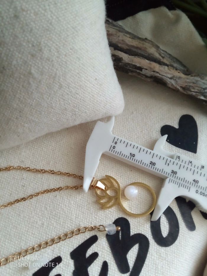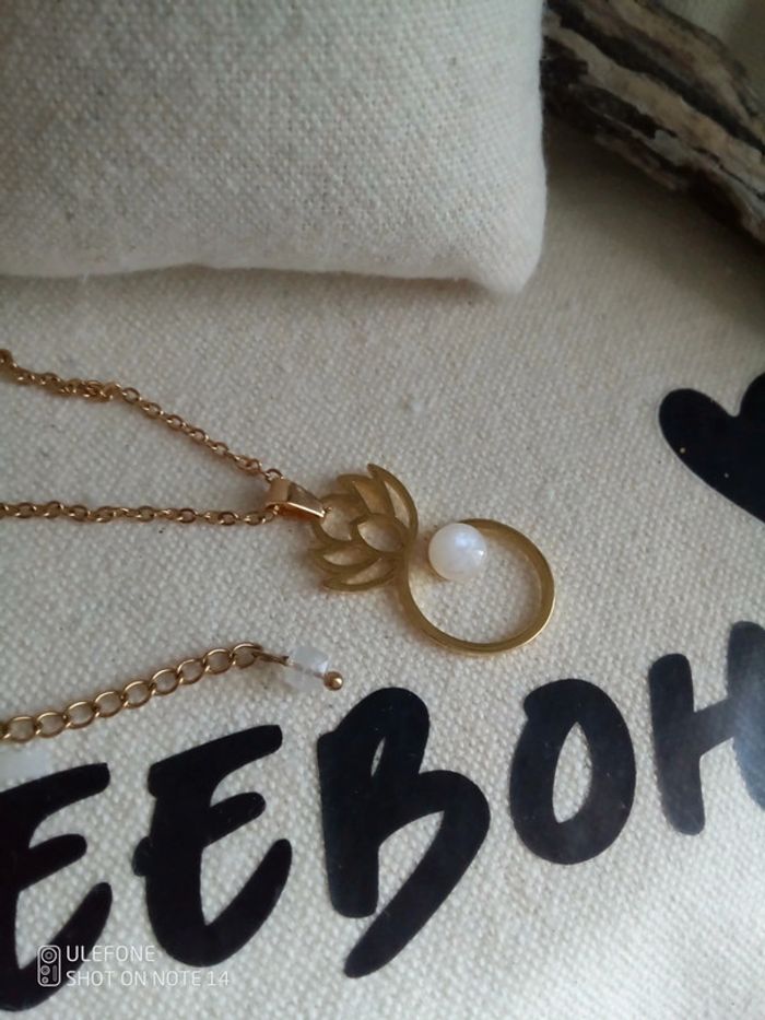 Collier lotus et pierre de lune naturelle - photo numéro 1