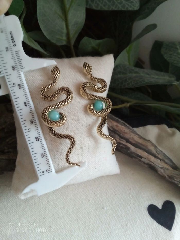 Boucles d'oreilles bohèmes serpents et pierres d'amazonite - photo numéro 1