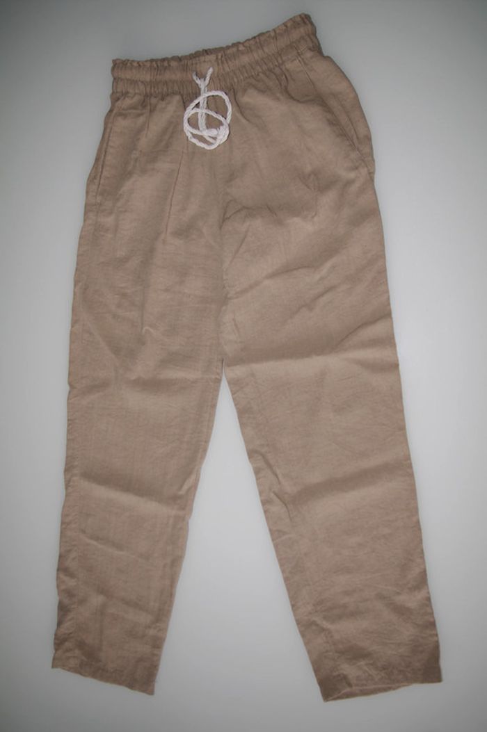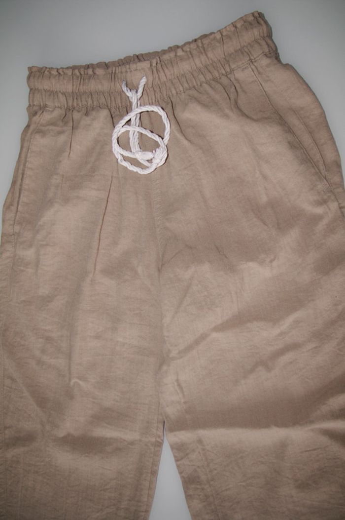 pantalon beige en viscose et polyamide, pour mi saison/été, taille élastique + cordon, marque: H&M, pour femme taille XS, très propre, sans aucun trous ni taches