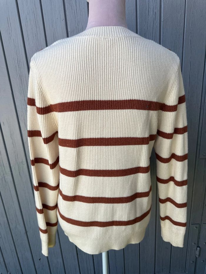 Pull manches longues rayé marron beige - photo numéro 3