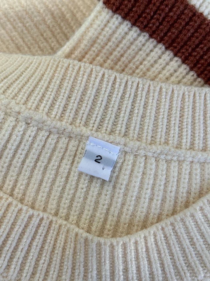 Pull manches longues rayé marron beige - photo numéro 2