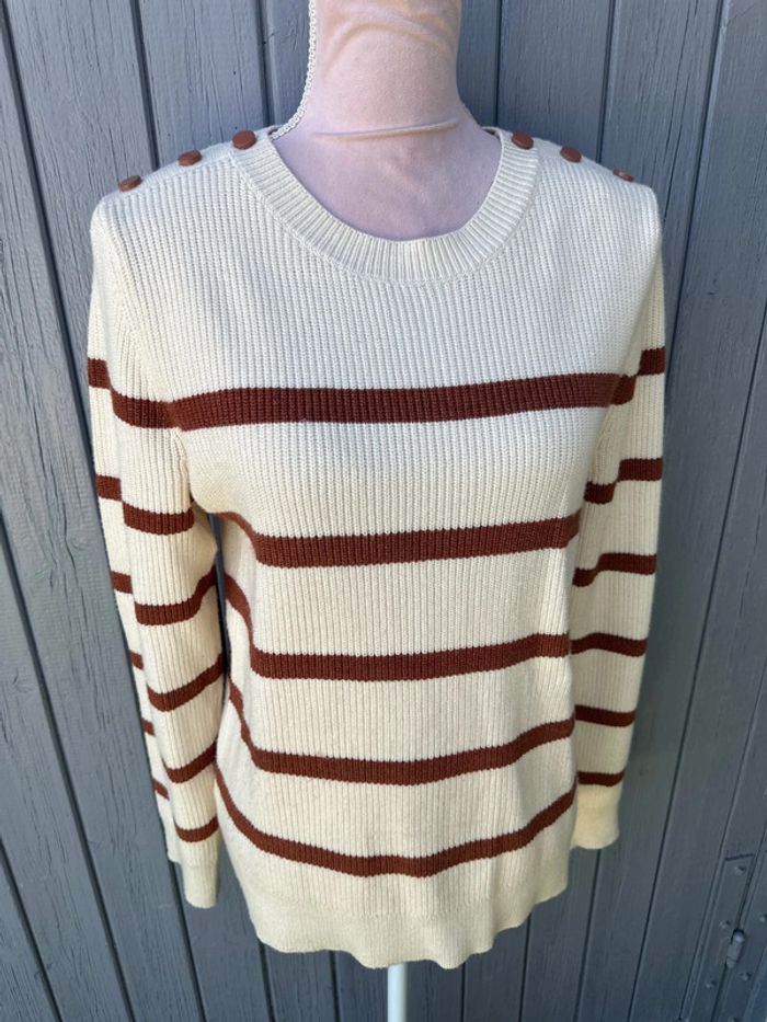 Pull manches longues rayé marron beige - photo numéro 1