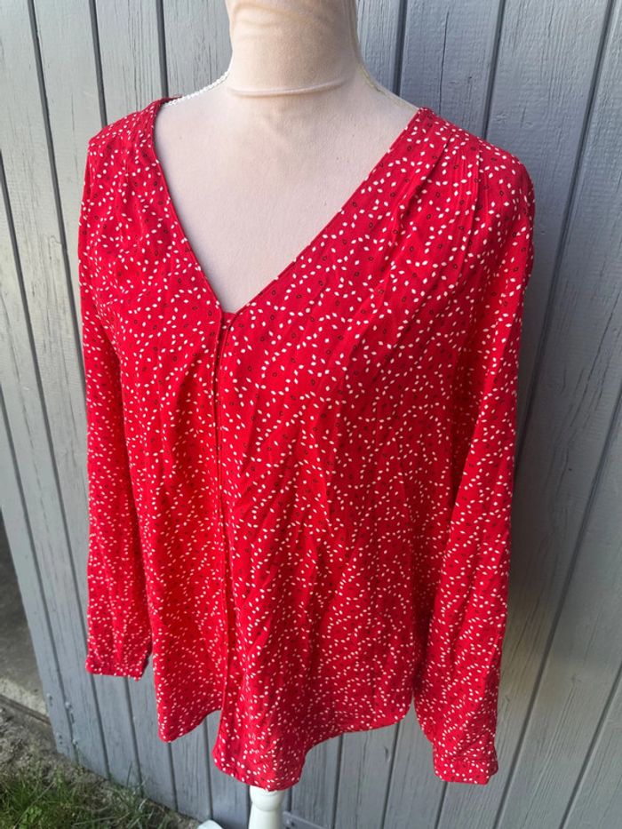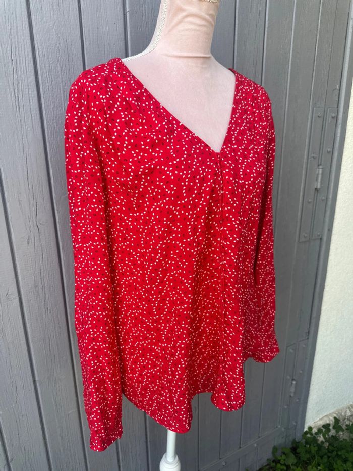 Blouse été manches longues légère colorée fleurie rouge blanche décolletée - photo numéro 1