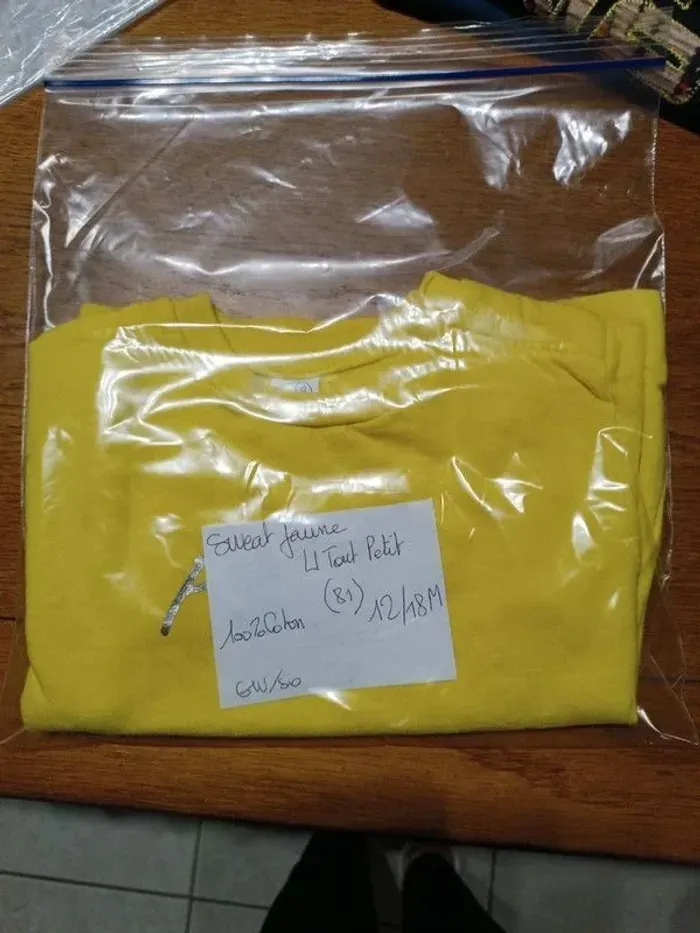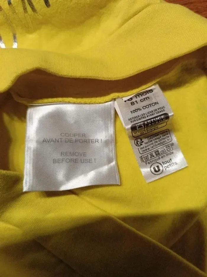 Sweat jaune U Tout Petit 12/18M (81cm), 100% coton. NEUF