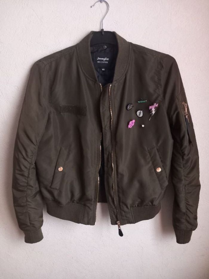 Blouson kaki de chez Jennyfer avec l' inscription Awesome à l' arrière Manque 2 décorations sur le devant, voir sur la dernière photo