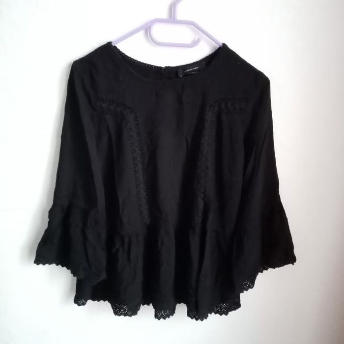 Jolie blouse manche 3 /4 avec dentelle sur le devant, en bas des manches et sur le bas en très bon état Matière principale, 100 % viscose Dentelle, 100 % coton #42Betty