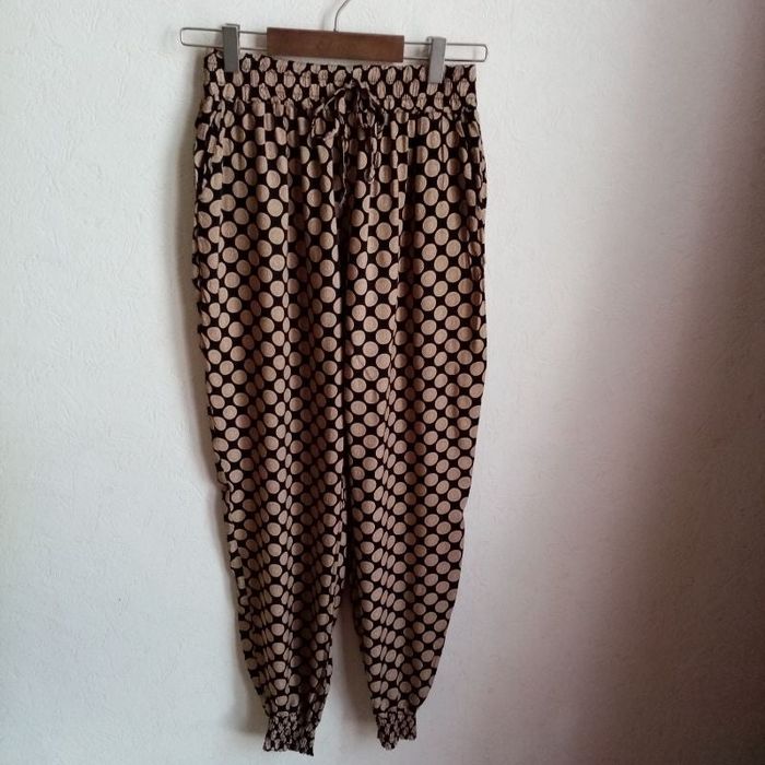 Joli pantalon fluide avec 2 poches latérales resserré au niveau des chevilles 100 % coton Taille petit, correspond à un M/L
