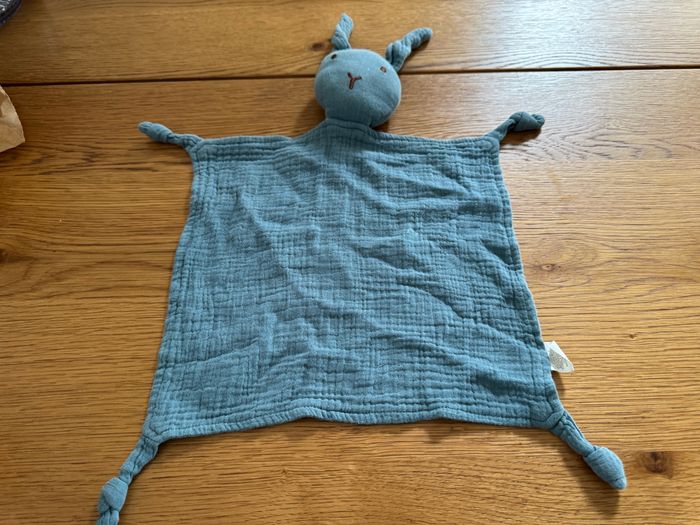 Doudou lange lapin  bleu très bon état   enfant bébé   Petite tache blanche - photo numéro 1