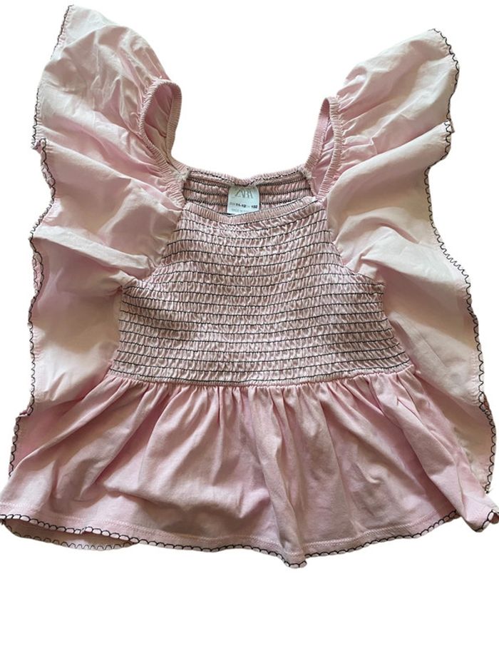 Blouse Zara smokée avec volants Taille 12 ans Rose claire Neuve portée 2 fois