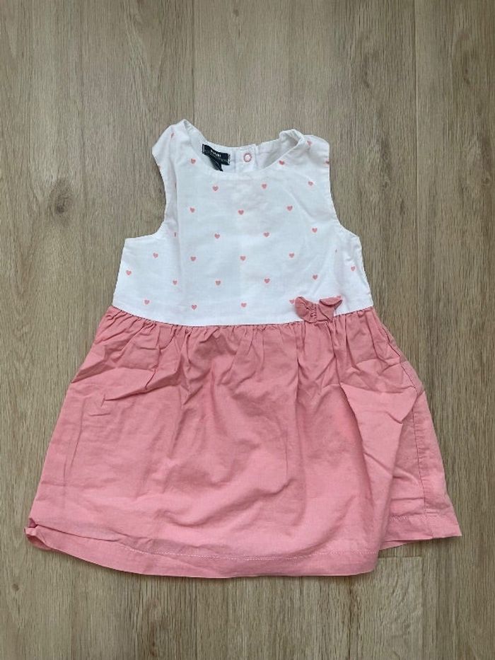Robe Kiabi rose et blanche avec des cœurs en très bon état, taille 12 mois