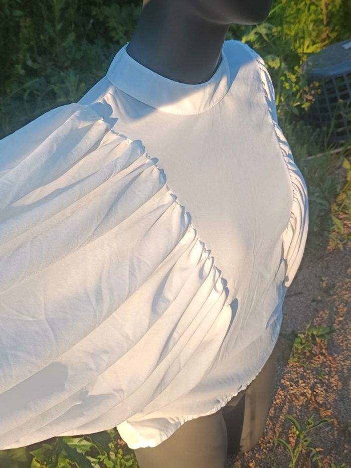 Lire ma bio Blouse blanche manches chauve-souris Col ras du cou Transparente Polyester #blouseblanche #excellentétat