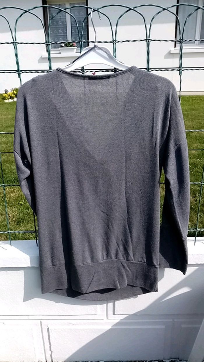 Pull gris 67 % polyester 31 % viscose 2 % elasthane Il y a des boules de moumouttes dessus #milou80140femmetailleM