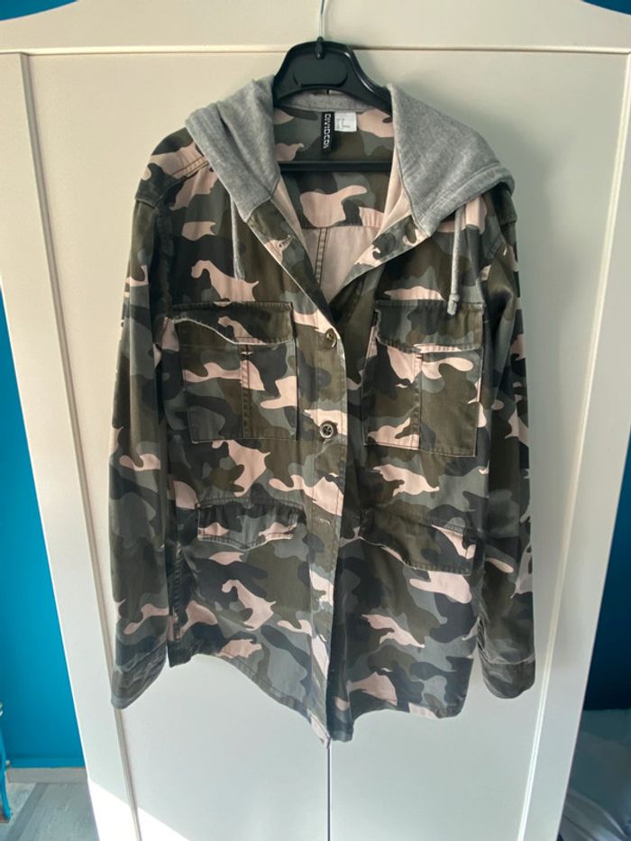 Bonjour Je vends veste militaire en tbe Taille mentionnée 32 mais taille plus grande plutôt 34 Marque H&M Réductions activées #patricia09091980_vestexs
