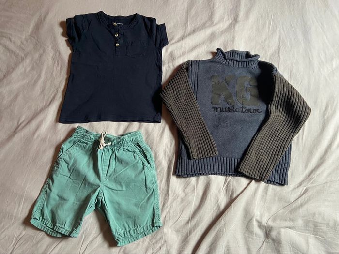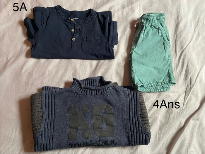 Bonjour Je vends lot 3 articles Pull et t-shirt 5 ans Short 4 ans légère petite tache jaune peu visible Réductions activées #patricia09091980_lotgarçon4ans