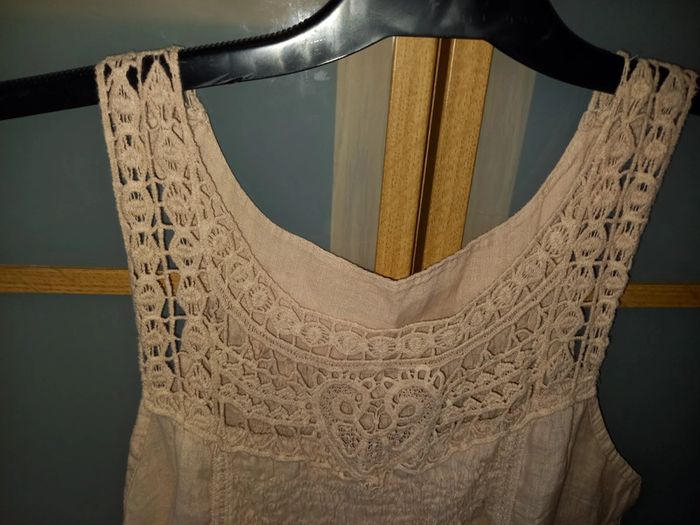 Matière lin Longueur totale : 85 cm Largeur sous poitrine : 54 cm Largeur du bas : 67 cm Trés bon état, porté 2 ou 3 fois #lolo_13650_Habits_Femmes_T46