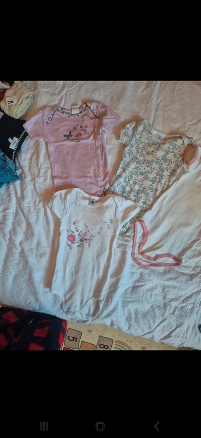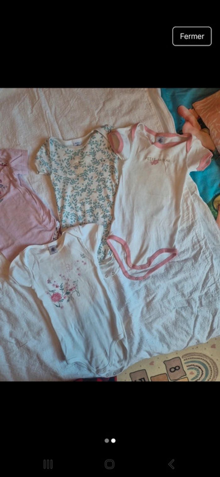 1 absorba taille 12 mois mais taille grand et 3 petit bateau. Légèrement taché, mais pas de caca ou pipi !!!