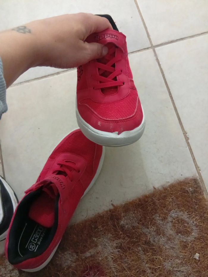 elles sont souples et légères pour le sport, elles ont été portés quelques fois mais éraflures devant une chaussure Envoi rapide