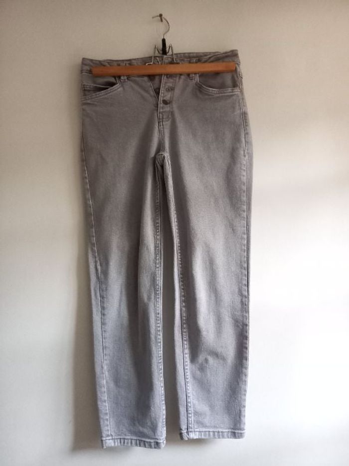 Jean gris clair Gemo CAMPS à boutons. 2 poches devant, 2 à l'arrière. Passants pour ceinture. Rarement porté. Parfait état