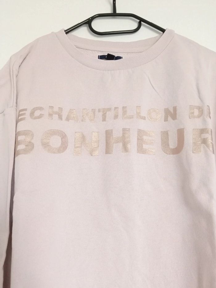 Sweat femme avec inscription un échantillon de bonheur. Taille L, 100% coton. Commence à faire des bouloches à l'intérieur (voir photo). #lolodidi60190_sweatfemmeTL