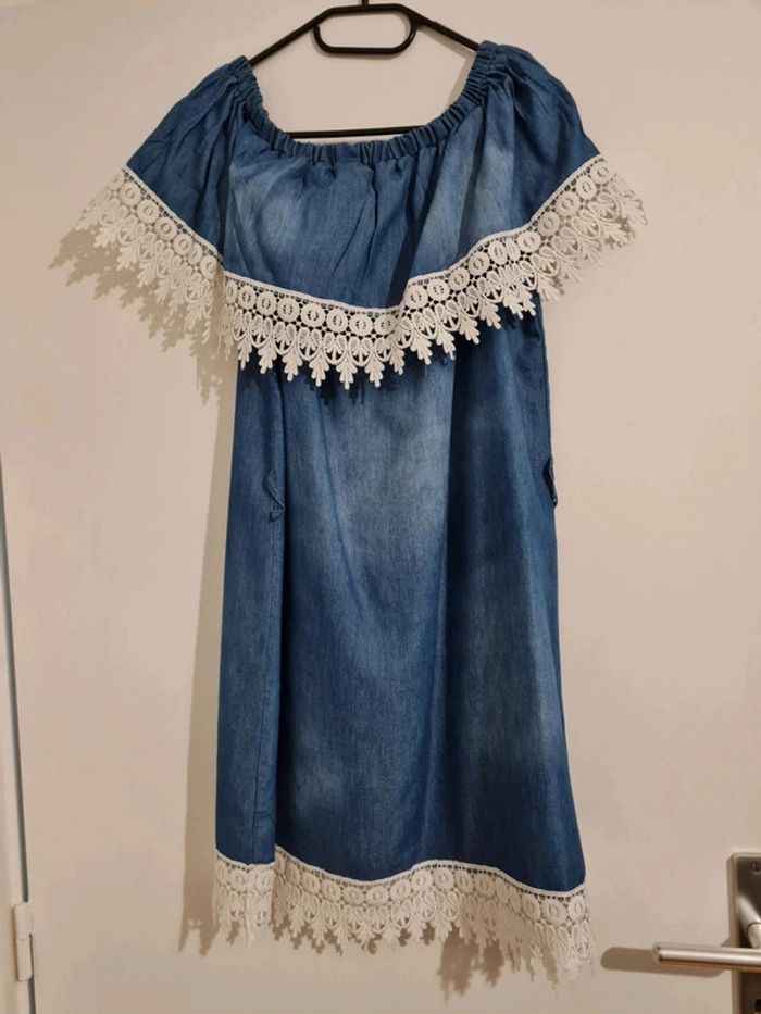 Robe couleur jeans avec dentelle 2 passants pour mettre une ceinture. #lolodidi60190_robedentelleTL40