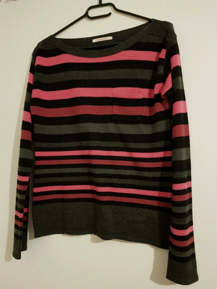 Pull en laine avec rayures et une poche #lolodidi60190_pullfemmeTM38