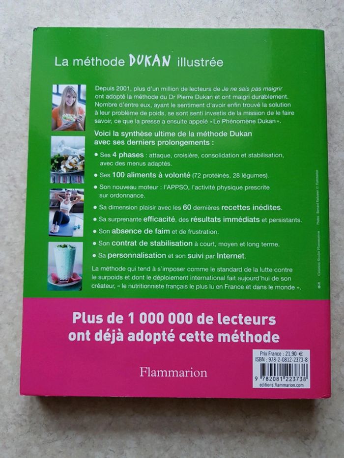 La méthode Dukan illustrée avec ses 4 phases: Phase 1: l'attaque Phase 2: la croisière Phase 3: la consolidation Phase 4: la stabilisation définitive Tout est expliqué dans le livre et des recettes sont fournies de l'entrée au dessert plus de 120 recettes. 254 pages #lolodidi60190_livreminceur