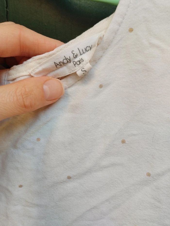 Blouse Andy&Lucy Blanche et pois doré Boutons dorés ( quelques un ont un peu de couleur en moins). Idéale pour l'été