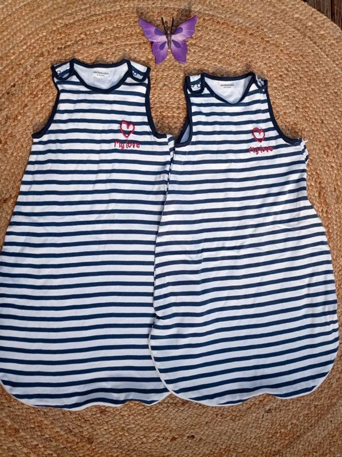 Verbaudet X2 gigoteuses My love ❤️ Bleues blanches Fermeture pressions Taille 0-6 mois #douceur_06moisgarçon #douceur_06moisfille C20