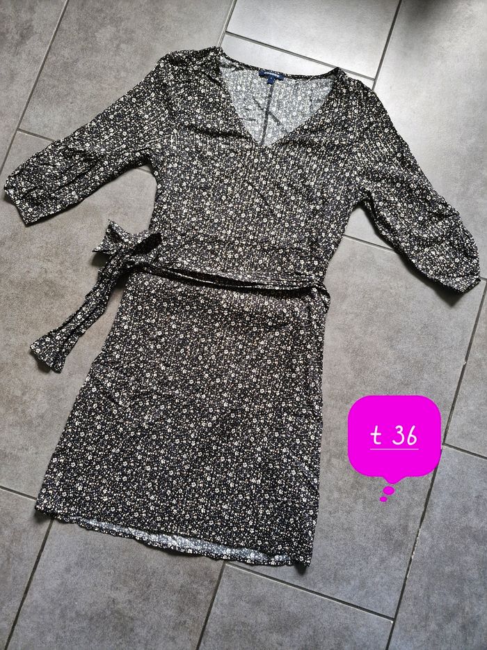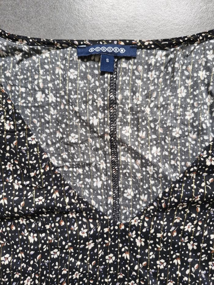 Très jolie robe 👗 femme légère Taille 35 de la marque Bonobo Robe noir ⚫️ avec petites fleurs 🌸 et liseré or Manches trois quarts Arrive aux genoux Réduction sur les lots activé 😊