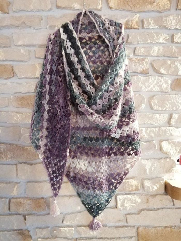 Très grand châle et très jolie 2m15 x 99 cm sans les pom-pom 10% Mohair 10 % Merino 80% Premium Acrylique laine de chez lidiacrochet