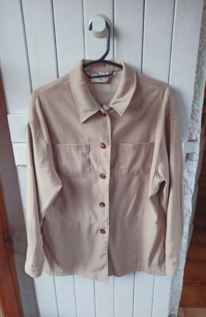 Surchemise beige crème , la vrai couleur n'est pas en photo , impossible d'avoir une photo correct . Vintage marque ici et maintenant Mi longue quelques bouloches