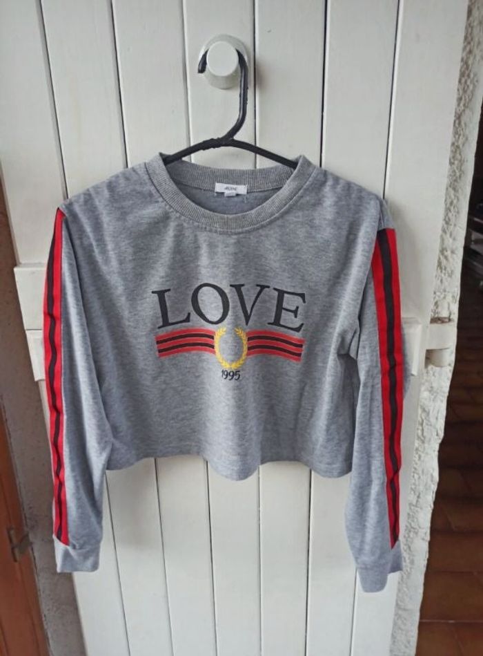 Sweat gris crop imprimé love Bandes rayé sur les manches Porté