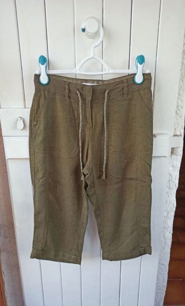 Pantacourt kaki avec galon pour resserrer Taille 36 neuf juste lavé 📏 Longueur 65 cm 70 % coton 23 % polyester 7 % fibre métallisée
