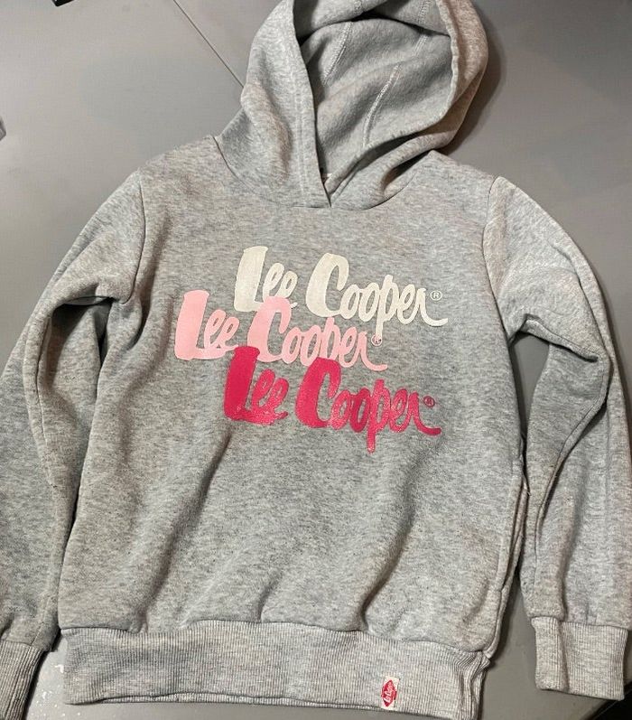 Sweat à capuche fille T 10 ans Lee Cooper Couleur gris Manches longues A capuche avec tissu très doux à l'intérieur Jolies inscriptions sur le devant colorées Très agréable à porter car tissu très doux à l’intérieur Très bon état