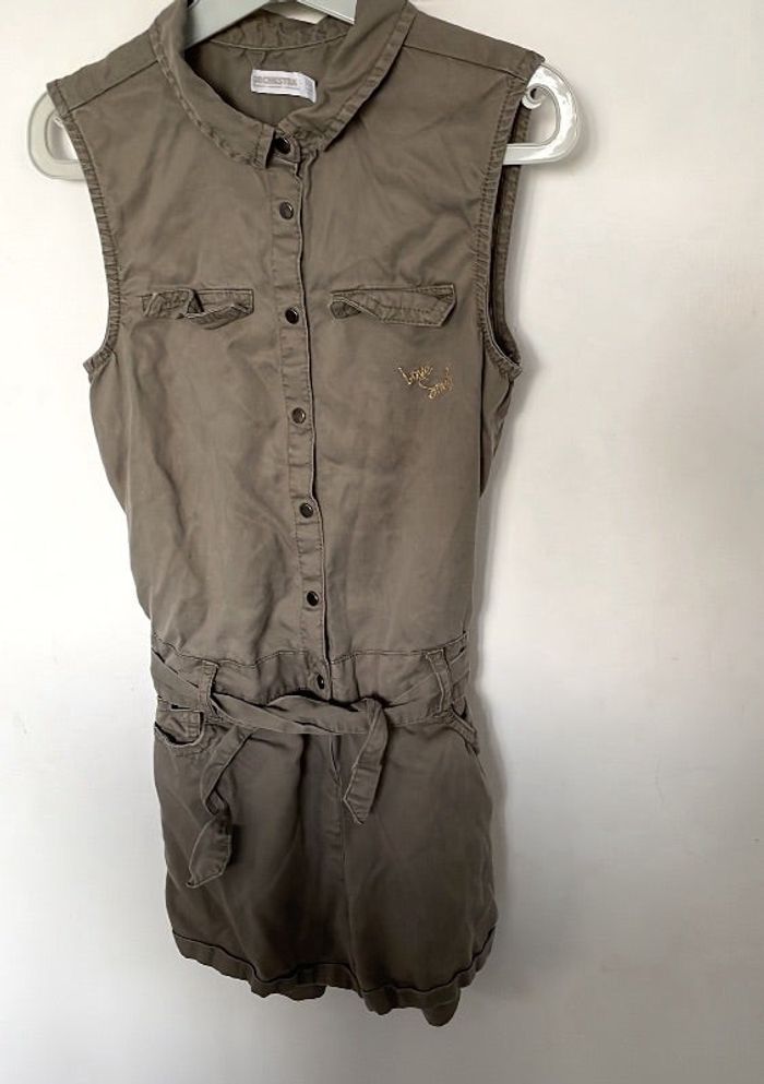 Belle combinaison short T 10 ans Orchestra Couleur kaki Petit col que l'on peut ouvrir avec les boutons pressions Ceinture au niveau du short et 2 poches Très bon état