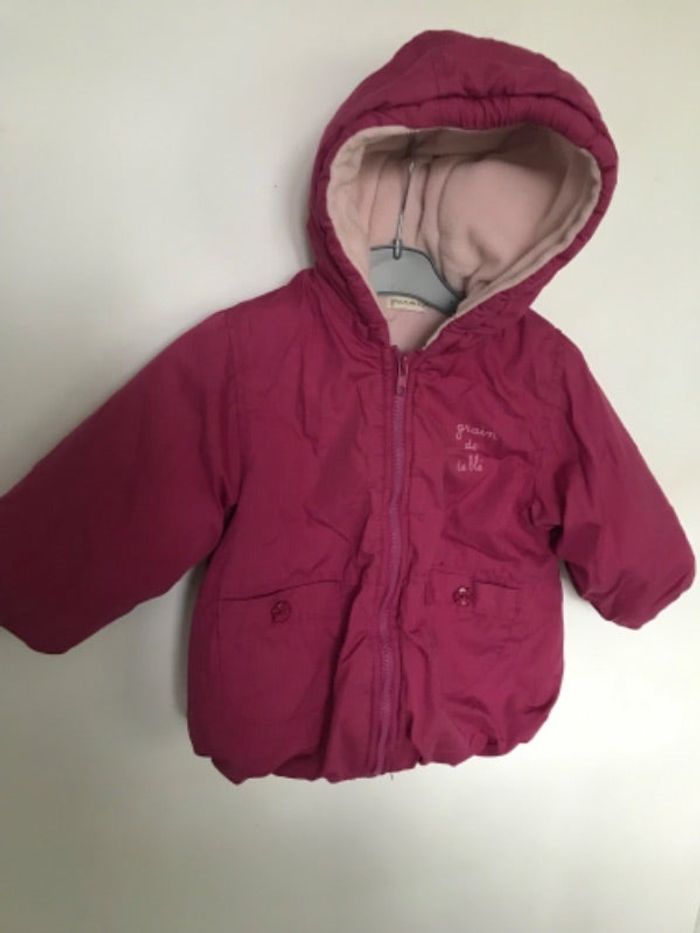 Manteau Grain de Malice T 18 mois Couleur rose Capuche et manteau entièrement doublée d’une matière chaude Fermeture éclair 2 poches sur le devant Très bon état