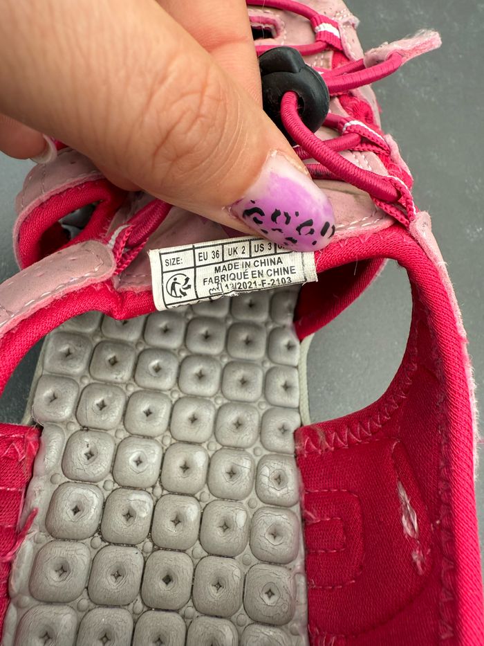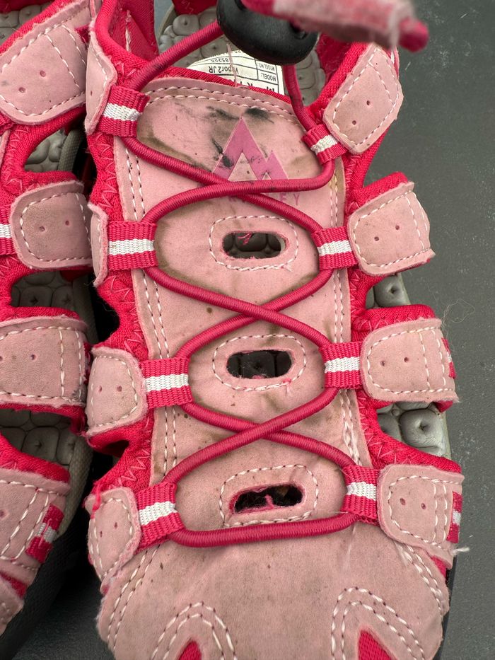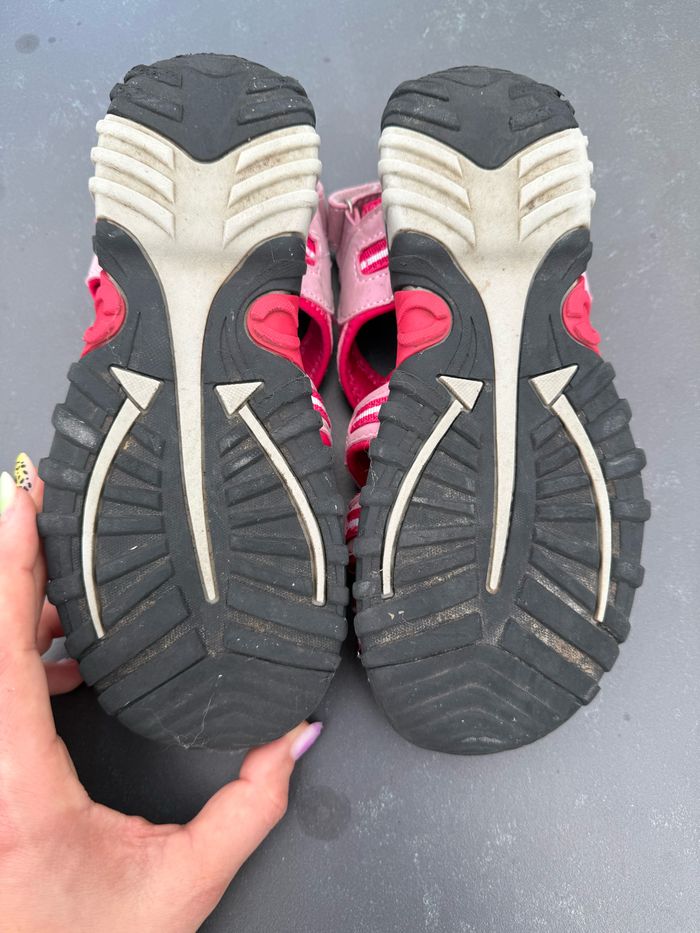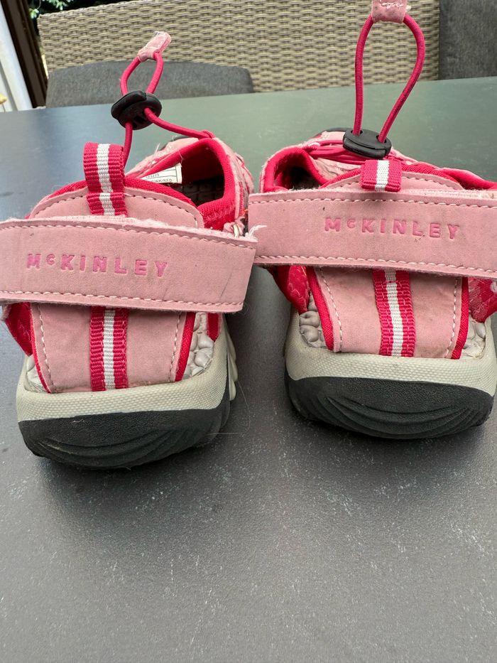 Paire de sandales de randonnée de couleur rose. Fermeture par scratch au talon, laçage élastique, zone orteils fermée. En excellent état, peu portées. Le talon est légèrement abîmé (voir photo). Pointure 36, marque McKinley. Envoi rapide et soigné, réduction automatique dès 2 articles sélectionnés. Mes autres ventes ici: #chaussuresugolola #sandalerandonnee36 #sandalesfille36 #sandalesfillerandonnee #mckinley36
