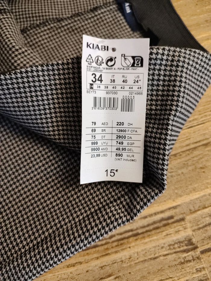 Pantalon chic à mini carreaux. Près du corps. Taille 34. Jamais porté. Entièrement neuf avec étiquette.