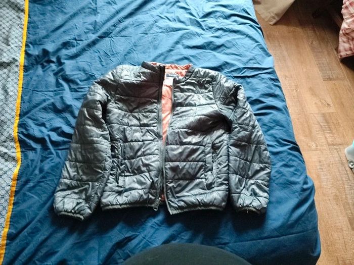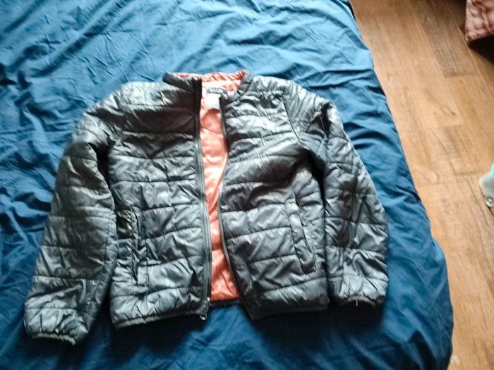 Très jolie doudoune en 10 Ans... Attention, étiquettes coupées. Kiabi. Très bon état. Grise, intérieur corail.