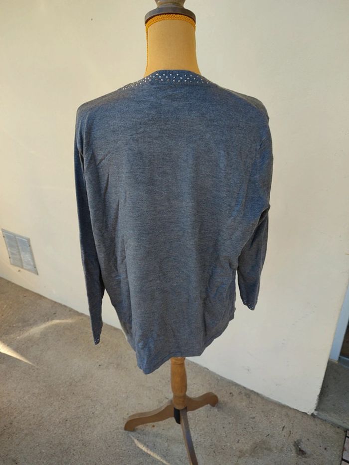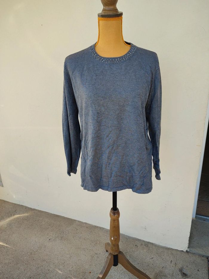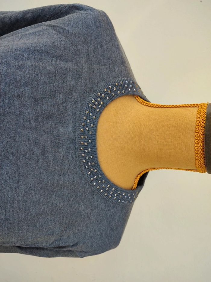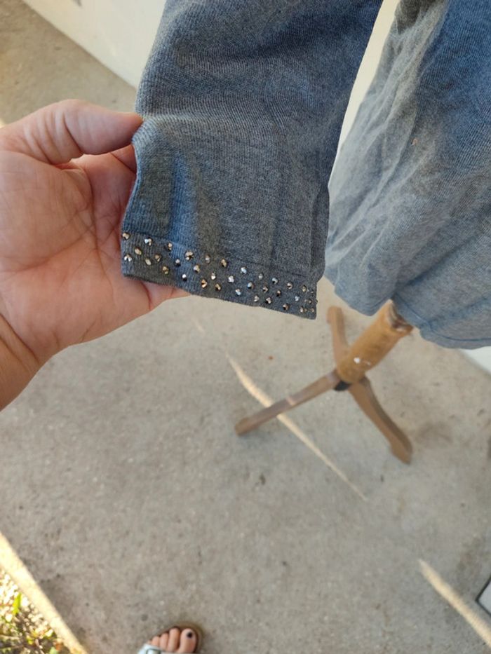 Très joli pull gris col rond avec Strass. Neuf. Taille 6. Marque Zamba.