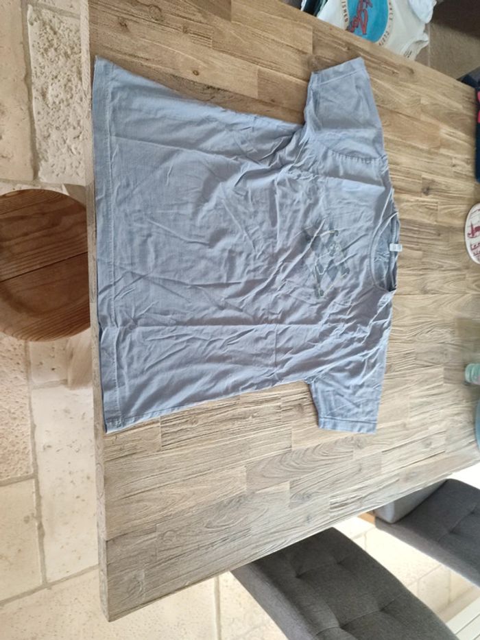T-shirt gris taille L. Marque lafraise.com. imprimé représentant une scène de crime sur un jeu d'échecs. État satisfaisant