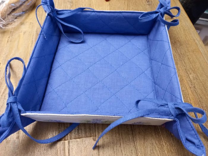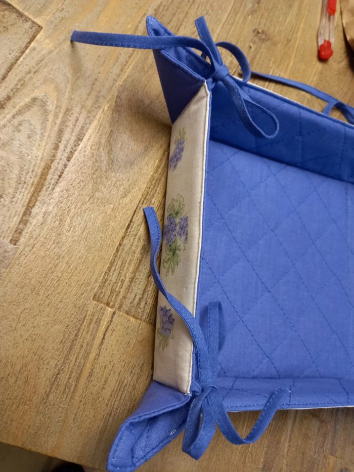 Panière carrée en tissu. Très mignonne avec ses petites grappes de raisins.