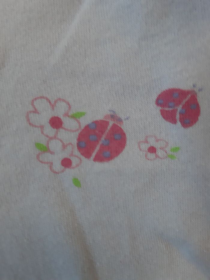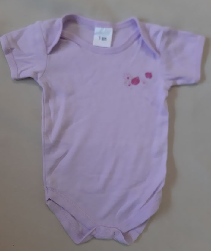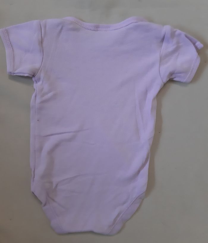 body à manches courtes mauve, en taille 12 mois motifs : coccinelles, fleurs En très bon état.