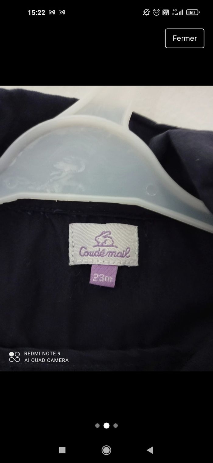 #deuxanslilou92170 En parfait état Taille 23 mois Marque coudemail Couleur marine Pour voir tout les vêtements de cette taille copiez collez #deuxanslilou92170 dans la barre de recherche