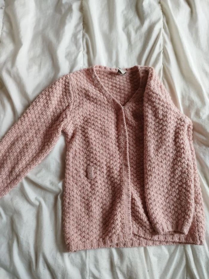 En bon état Gilet en laine ,manque la ceinture Vieux rose légèrement pailleté Convient pour 3/4 ans