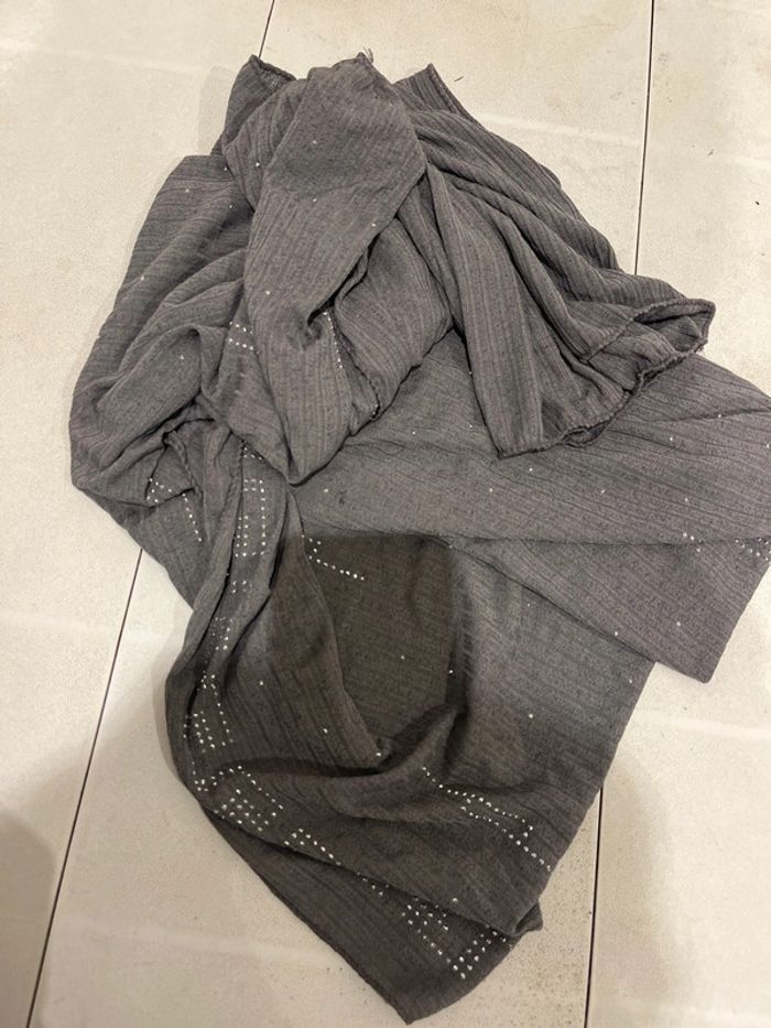 Foulard gris strass argenté Très bon état Existe en d’autres colis